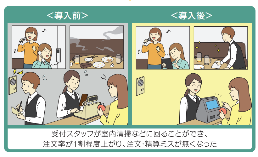 | 成果 | 注文・精算ミスがゼロになり、注文率も約1割向上。スタッフはその分、店内の清掃などに時間を回せるようになった。 |