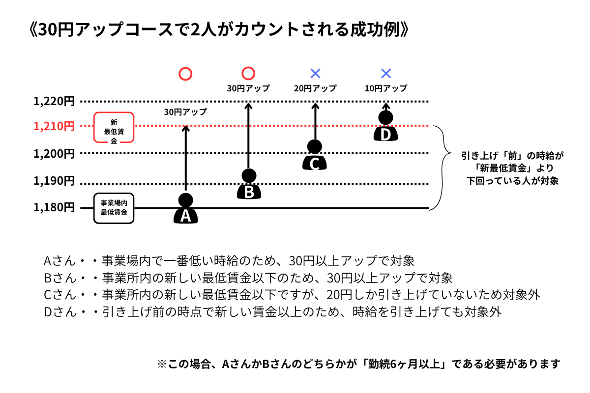 - 事業場の最低賃金を+30円以上引き上げること